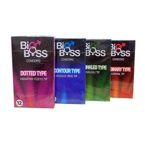 - Bao cao su Big Boss là gồm 4 loại sản phẩm cho bạn lựa chọn : Bao cao su trơn truyền thống; Bao cao su có đai thắt định hình; Bao cao su có gân nổi ; Bao cao su có gai nổi
