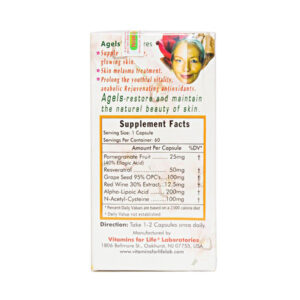 - Viên uống làm đẹp da Agels Vitamins For Life cung cấp các vi chất quý từ thiên nhiên giúp trẻ hóa da, phục hồi các tổn thương da do tuổi tác, giúp làn da khỏe mạnh tươi sáng, ngăn ngừa thâm, nám, tăng độ đàn hồi ở da, chống lão hóa cơ thể, lão hóa da, tóc, móng.