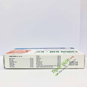 - Tá dược phụ gia sử dụng: Đường kính,taic, bột sắn, nipazil, nipazol, parafin vừa đủ 4g