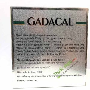 Gadacal Bạn đang tìm một sản phẩm bổ sung calci, lysin và các vitamin cho cơ thể, giúp trẻ ăn ngon và mau lớn, phát triển khỏe mạnh?thuocthat.com mang đến cho bạn sản phẩm Gadacal Phòng và điều trị các trường hợp thiếu vitamin và khoáng chất, cơ thể suy nhược, trong thời gian phục hồi sức khỏe phụ nữ có thai hoặc đang nuôi con bú.bài viết dưới đây mang đầy đủ thông tin sản phẩm mời bạn đọc tham khảo.