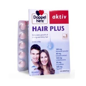 •  Hair Plus Doppelherz là sản phẩm có công thức gồm các thành phần có tác dụng tăng cường lưu thông máu. Cung cấp năng lượng cho tóc để phục vụ cho quá trình sản sinh tóc và phân chia các tế bào tóc. Cung cấp các dưỡng chất cần thiết để tổng hợp keratin (thành phần chính của tóc), ức chế hormone gây rụng tóc,…
