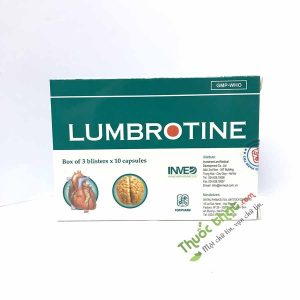 Lumbrotine là sản phẩm do Công Ty Cổ Phần Dược Phẩm Trung Ương 3 – Việt Nam nghiên cứu sản xuất và đăng ký lưu hành trên toàn quốc với số đăng ký là VD-32648-19. Thuốc Lumbrotine được biết đến với khả năng điều trị và phòng ngừa các di chứng của tai biến mạch máu não, chứng xơ vữa động mạch.