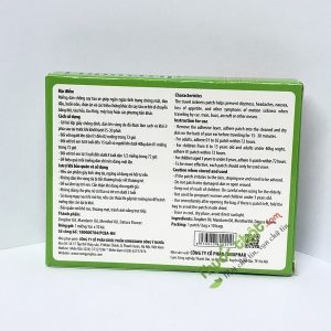 - Miếng dán chống say tàu xe giúp ngăn ngừa tình trạng chóng mặt, đau đầu, buồn nôn, chán ăn và các triệu chứng khác do say tàu xe khi di chuyển bằng ô tô, tàu hỏa, tàu thủy, máy bay hoặc các phương tiện khác