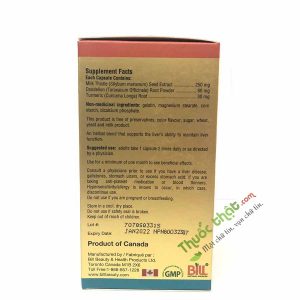 -mỗi viên nang chứa Silybum marianum 250mg ,curcuma longa 60mg, taraxacum offcinale 30mg,tinh bột ngô,magnesium stearate.