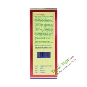 Để dễ uống và tăng tác dụng có thể pha với 50ml – 100ml nước ấm. Ngày uống 3 lần. Nếu bị khó thở về đêm, uống thêm 1 lần trước khi đi ngủ.