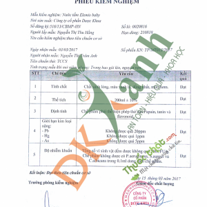 Phiếu kiểm nghiệm Tắm bé Elemis