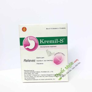 THUỐC KREMIL S Ngày nay, các bệnh liên quan đến dạ dày ngày càng phổ biến và đang trẻ hóa các bệnh lí thường gặp như: đầy hơi, khó tiêu, trào ngược dạ dày thực quản, loét dạ dày tá tràng… Các bệnh lí trên nếu được điều trị sớm sẽ chóng khỏi và không để lại biến chứng, sử dụng thuốc để điều trị là điều cần thiết. KREMIL-S là thuốc điều trị bệnh dạ dày, cách dùng, liều dùng và có nhứng chú ý gì khi sử dụng, Thuocthat.com sẽ giúp các bạn giải đáp những thắc mắc trên. Ngoài ra, các bạn có thể tham khảo một số thuốc Điều trị bệnh Dạ Dày tại đây: