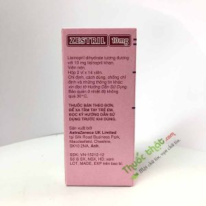Thuốc Zestril 10 MG Ngày nay các bệnh liên quan đến tim mạch như: huyết áp, nhồi máu cơ tim, rối loạn nhịp tim, đột quỵ đang là mối quan tâm của nhiều người, các bệnh tim mạch không chỉ xuất hiện ở những người cao tuổi mà còn xuất hiện ở những người trẻ. Việc điều trị cho người bệnh và dự phòng cho người có nguy cơ cao bị bệnh là điều cần thiết. Zestril 10 mg là thuốc được chỉ định điều trị bệnh loạn nhịp tim, Zestril 10 mg uống như thế nào? Liều lượng mỗi ngày là bao nhiêu? Lưu ý gì khi dùng thuốc? thuocthat.com sẽ giúp bạn giải đáp những thắc mắc trên. Ngoài ra, các bạn có thể tham khảo thêm các thuốc tim mạch khác tại đây:
