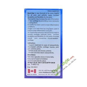 Boni Star là thực phẩm chức năng có tác dụng hỗ trợ điều trị viêm xương khớp, thoái hoá khớp, chấn thương sụn khớp, khô khớp, đồng thời cải thiện chức năng khớp giúp khớp chắc khỏe và dẻo dai. Boni Star được sản xuất tại Canada bởi Công ty Viva Pharmaceutical, Inc.