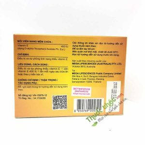 • THÀNH PHẦN: Vitamin E (dạng d-a-tocopheryl acetat Ph. Eur ) 400 IU, Tá dược: Dầu đậu nành.